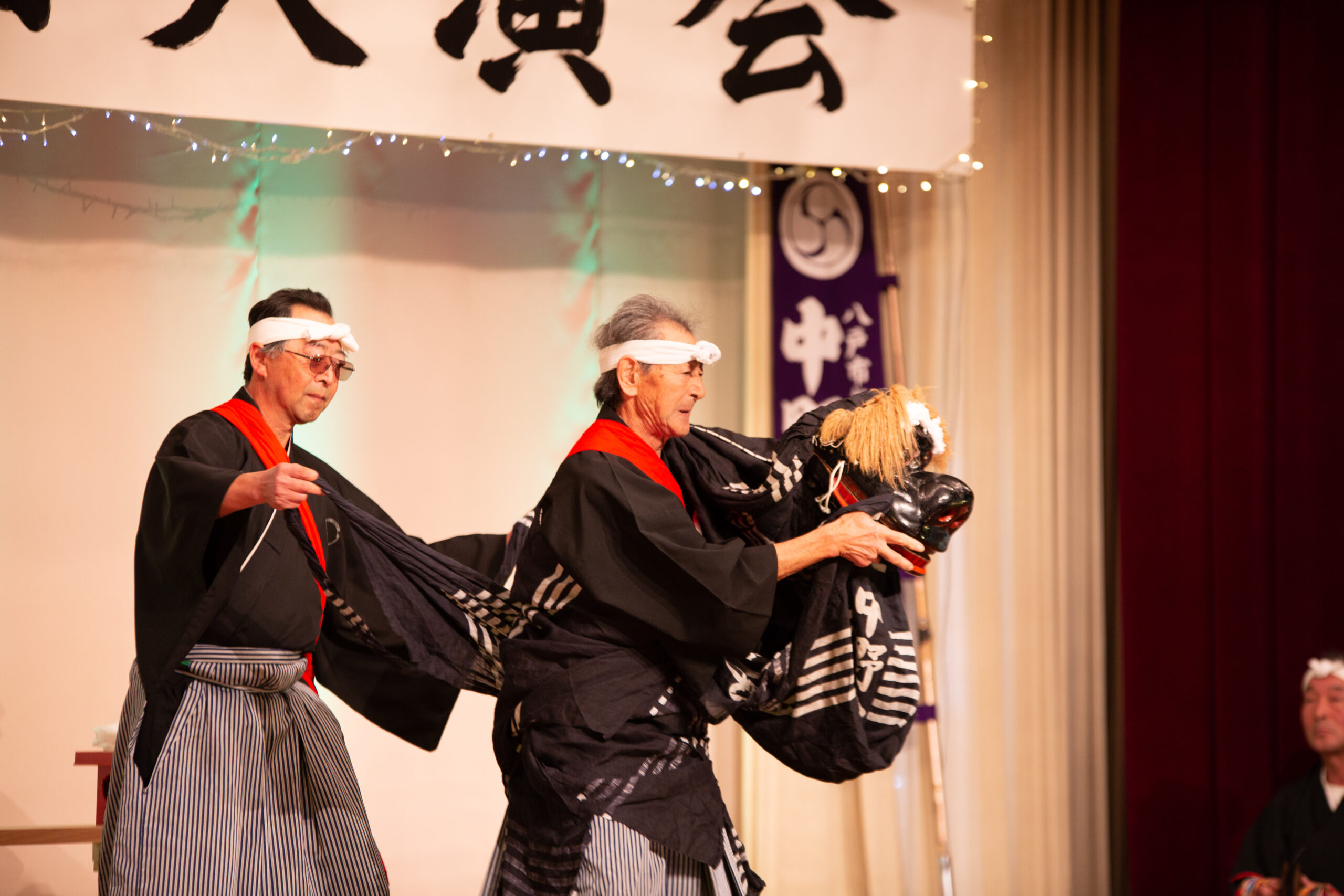 演目は、地元の芸能・中野神楽からはじまり、衣装ばっちりチャーミングに歌う歌謡愛好会の皆さんとダンサーが会場を沸かせ、Swingberry Jazz Orchestra(SJO)選抜メンバーの演奏や南郷の手踊り名人が聞きごたえ・見ごたえある演目を披露。あえて昭和の雰囲気ただよう装飾にしたステージも、村時代の「南郷公民館」に絶妙にマッチしていた。